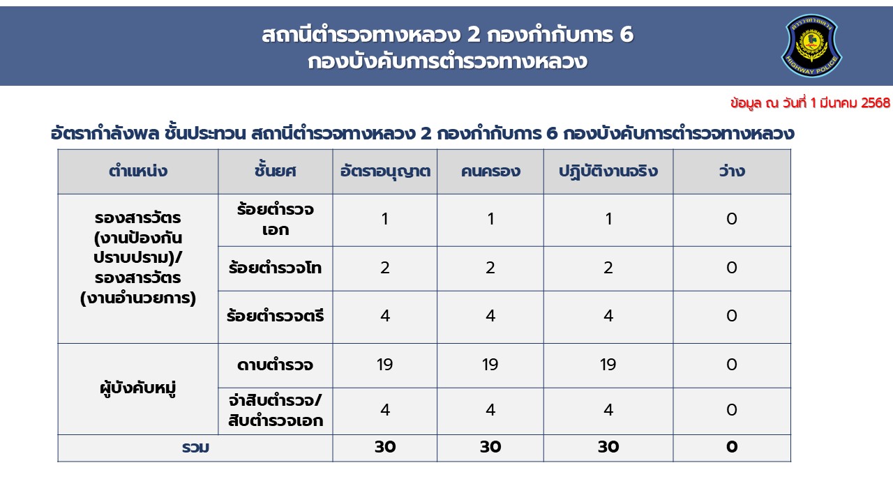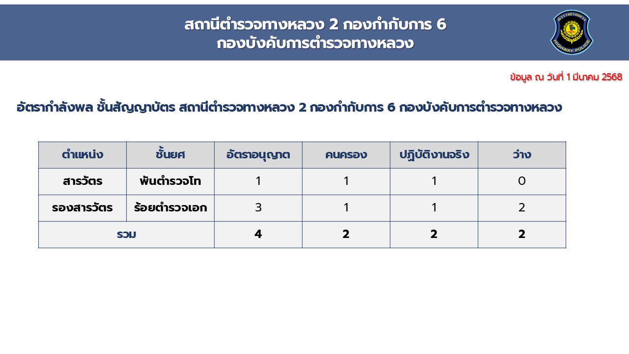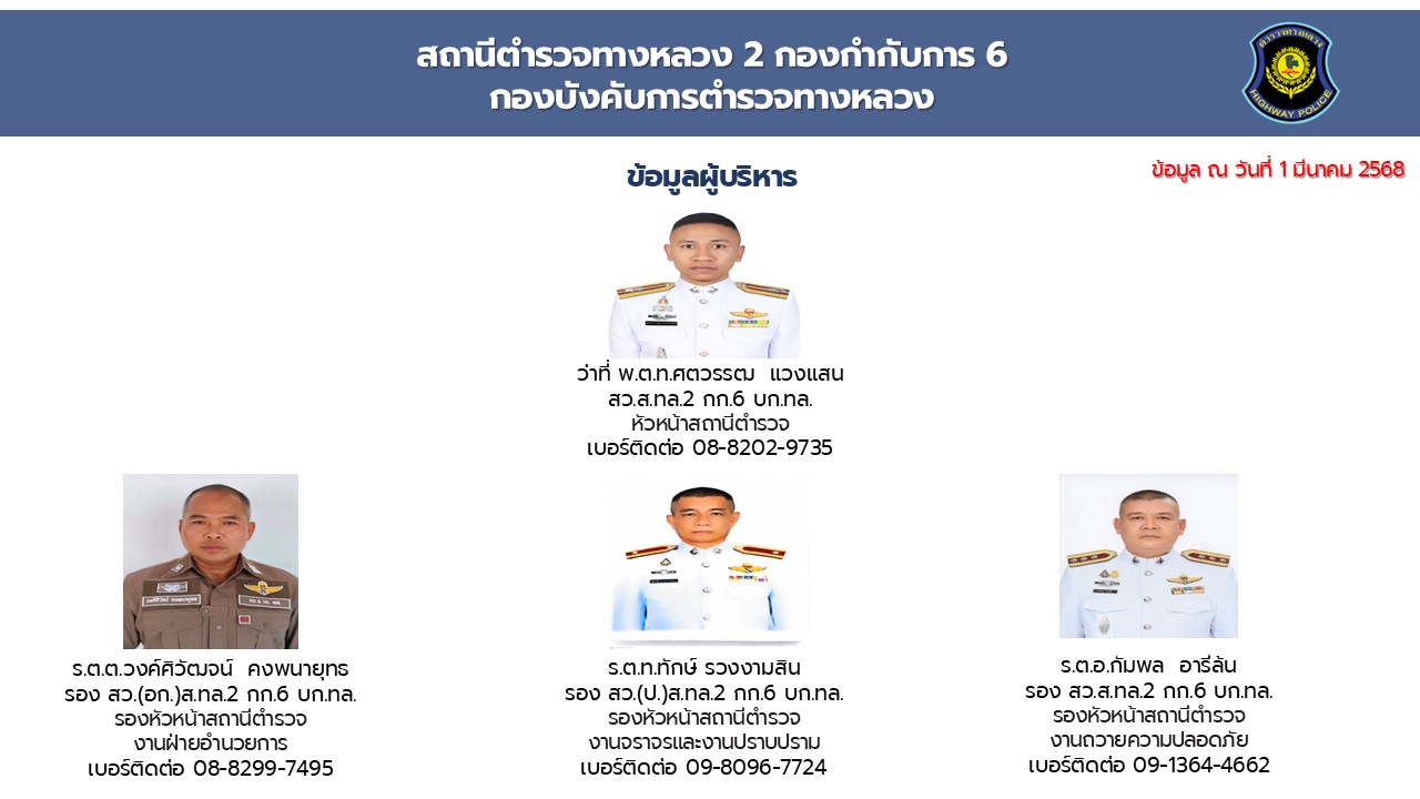 O2 ข้อมูลผู้บริหาร อัตรากำลังและพื้นที่ที่รับผิดชอบ